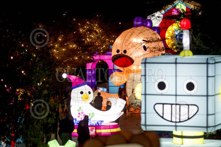 MONTERREY, NUEVO LEÓN, El festival de luces navideñas "Luztopía" es parte de un atractivo turístico durante el recorrido del paseo Santa Lucía. Cientos de personas visitan las más de 200 figuras iluminadas con motivo de la época navideña.
