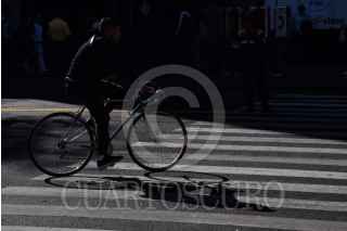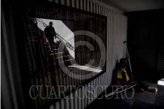 Una persona baja las escaleras de uno de los accesos del metro de HIdalgo, mientras otra persona en muletas permanece en espera de recolectar algunas monedas. FOTO: MARIO JASSO /CUARTOSCURO.COM