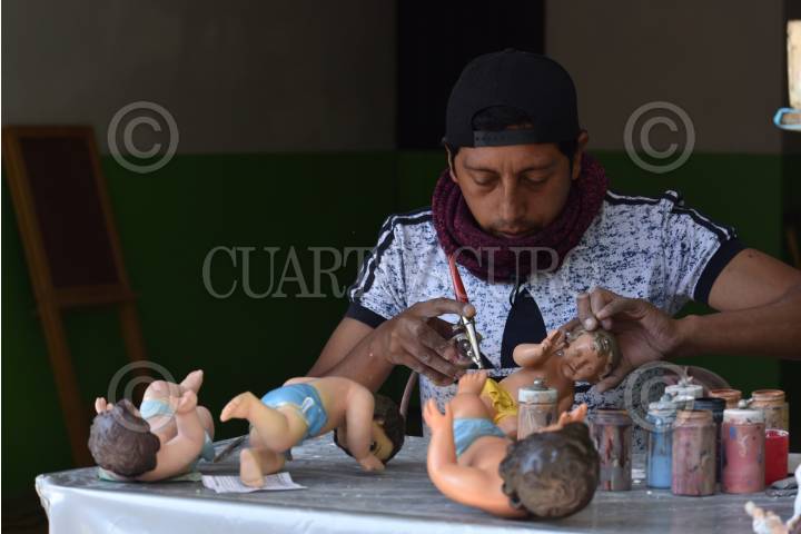 Víctor Martínez lleva más de 23 años dedicándose a la restauración de imágenes religiosas, durante estas fechas repara sobre todo imágenes del Niño Dios, las cuales van desde los 45 pesos hasta los 250 pesos dependiendo de qué han dañada pueda estar la imagen, instalado muy cerca del mercado 16 de Septiembre en la ciudad de Toluca, sus clientes lo buscan año con año para retocar o reparar sus imágenes. FOTO: CRISANTA ESPINOSA AGUILAR /CUARTOSCURO.COM