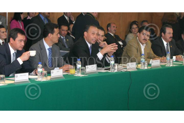 MEXICO, D.F., 09NOVIEMBRE2005.- Miguel Osorio Chong, gobernador de Hidalgo, Ismael Hernández Deras, gobernador de Durango, José Reyes Baeza, gobernador de Chihuahua, Jesús Silverio Cavazos, gobernador de Colima y Enrique Martínez Martínez, gobernador de Coahuila, sostuvieron una reunión con los coordinadores de los diversos partidos políticos en la Cámara de Diputados. FOTO: Moisés Pablo/CUARTOSCURO.COM