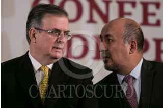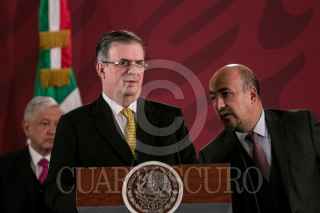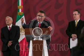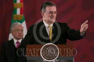 Durante la conferencia de prensa matutina en Palacio Nacional, fue presentado el informe en materia de migración por parte de Marcelo Ebard, titular de la Secretaria de Relaciones Exteriores. Quién explicó los avances y estrategias implementados a lo largo del año para la regulación del flujo migratorio. Asimismo, el mandatrio dio detalles de la situación por la que atraviesa la emnajada mexicana en Bolivia, la cual ha sido asediada por el ejécito. Ebrard Casaubón detalló que ha enviado un isntrumento ante la Corte Penal Internacional. FOTO: GALO CAÑAS /CUARTOSCURO.COM