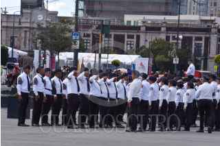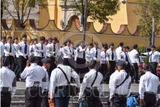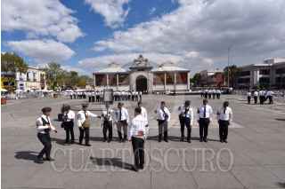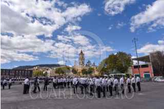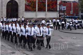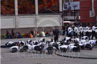 Cadetes de la Academia de Policías de Toluca realizan ejercicios en la Plaza Ángel María Garibay como parte de su formación policiaca. FOTO: CRISANTA ESPINOSA AGUILAR /CUARTOSCURO.COM