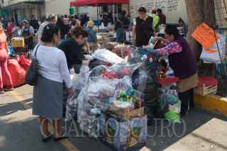Hoy iniciaron los trabajados de limpieza del Mercado de San Cosme, que se incendio el pasado 22 de diciembre, varios locatarios pudieron sacar su mercancía que inmediatamente comenzaron a vender en el estacionamiento y en la calle Gabino Barreda. FOTO: MOISÉS PABLO/CUARTOSCURO.COM