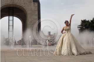 Quinceañera posa para una fotografía sobre la explanada de Monumento a la Revolución. FOTO: MAGDALENA MONTIEL/CUARTOSCURO.COM