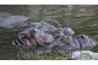 Nació un segundo hipopótamo en el Zoológico de León quien se encuentra en buen estado de salud, así lo informaron sus cuidadores. La cría ya lo pueden observar los visitantes. El pequeño mamífero aun se deja ver tímidamente acompañado de su madre. FOTO: ESTEBAN HERNÁNDEZ/CUARTOSCURO.COM