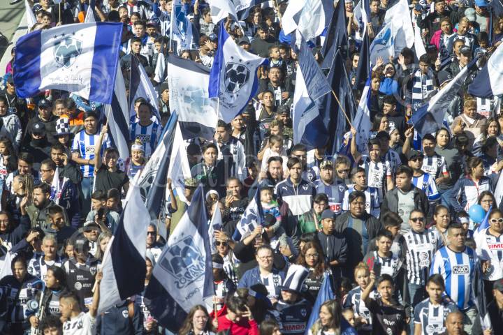 Aficionados de los Rayados del Monterrey asisten al desfile por avenidas de la ciudad en apoyo a su equipo. Jugadores Rayados celebran el campeonato, apertura 2019.