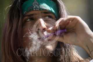 Movimiento 420, promotores del uso de la marihuana con fines recreativos, protesta cada martes y jueves frente al Senado de la República. Jóvenes conviven dos veces por semana en las afueras de la cámara alta. FOTO: VICTORIA VALTIERRA/CUARTOSCURO.COM