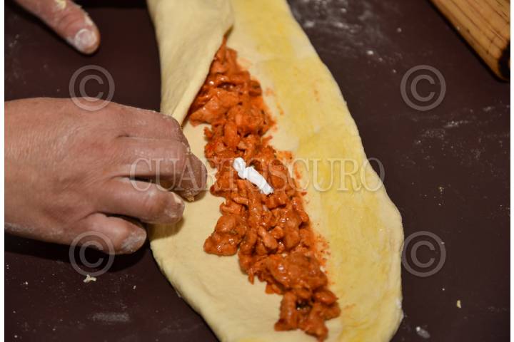 La Familia Mejia realiza cada año roscas tradicionales pero este año decidieron innovar y adaptaron la masa rellenándola con carne al pastor; la compartieron con sus familiares y llegaron a las redes sociales, ahora para festejar el Día de Reyes les han llegados muchos pedidos de este tipo de rosca; la base es masa dulce-salada, rellena de carne al pastor, hawaiana y campestre, adornada con chile pimiento morron y champiñones y tres muñecos en cada rosca, que alcanza para 8 personas. Con su negocio familiar Banquetes Delicias han estado surtiendo pedidos desde el 30 de diciembre del año pasado y para este 6 de enero serán los pedidos más grandes para festejar en los hogares mexiquenses. FOTO: CRISANTA ESPINOSA AGUILAR /CUARTOSCURO.COM