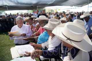 Andrés Manuel López Obrador, presidente Constitucional de los Estados Unidos Mexicanos, en la “Entrega de Obra pública al Municipio de Ayala, dentro del Programa de Mejoramiento Urbano” en Anenecuilco. Lo acompañan Cuauhtémoc Blanco Bravo, gobernador de Morelos; Román Meyer Falcón, secretario de Desarrollo Agrario, Territorial y Urbano; Víctor Villalobos Arámbula, secretario de Agricultura y Desarrollo Rural y Jesús Ramírez Cuevas, coordinador general de Comunicación Social y Vocero del Gobierno de la Republica. FOTO: PRESIDENCIA/CUARTOSCURO.COM