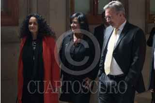 La senadora Susana Harp y Irma Eréndira Sandoval, secretaria de la Función Pública acompañada de su esposa, el politólogo John Ackerman, después de asistir a la ceremonia en donde fue recibida la nueva ministra de la SCJN, Margarita Ríos-Farjat. FOTO: MOISÉS PABLO/CUARTOSCURO.COM