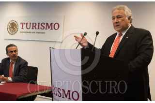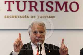 Miguel Torruco Marqués, secretario de Turismo federal, ofreció una conferencia de prensa para dar un informe sobre las políticas y programas que se implementaron el 2019, como la plataforma digital de promoción turística Visit México y los ahorros que se hicieron tras la desaparición del Consejo de Promoción Turística. FOTO: MOISÉS PABLO/CUARTOSCURO.COM