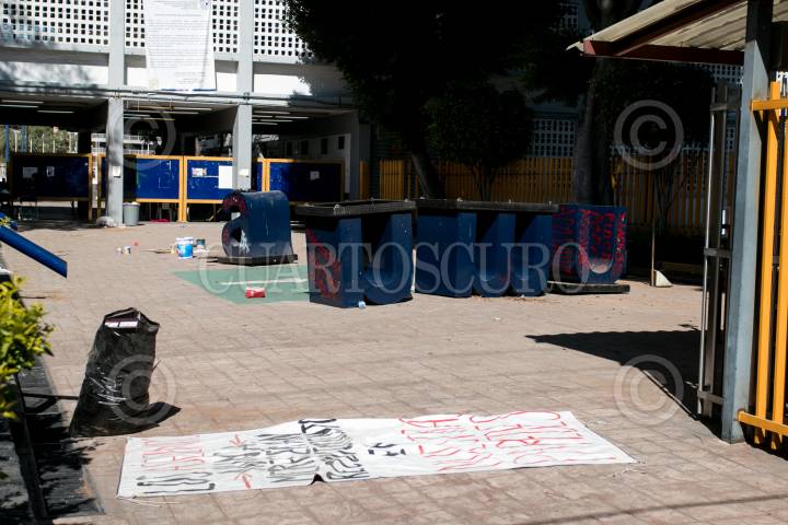 La Escuela Nacional Preparatorio número 9 “Pedro de Alba, de la Universidad Nacional Autónoma de México (UNAM), a más de un mes del paro de labores en exigencia al cese de casos de abuso, acoso y hostigamiento por parte de profesoras a las alumnas. El día de ayer, se tenía prevista una mesa de diálogo entre autoridades y paristas, sin embargo fue levantada debido a las denuncias que la universidad interpuso hacia aquellos que resulten responsables por los daños materiales dentro del plantel. FOTO: GALO CAÑAS /CUARTOSCURO.COM