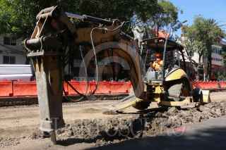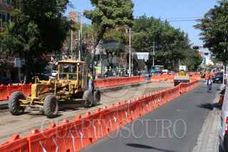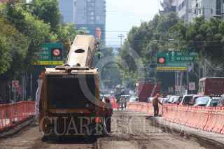 Pese a las protestas por vecinos de la colonia Narvarte por la ampliación de la Línea 5 del Metrobús, trabajadores del gobierno de la ciudad ya realizan trabajos de levantamiento de asfalto, sobre Avenida Cuauhtémoc. FOTO: ROGELIO MORALES /CUARTOSCURO.COM
