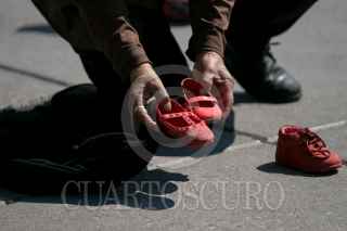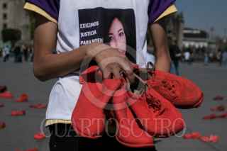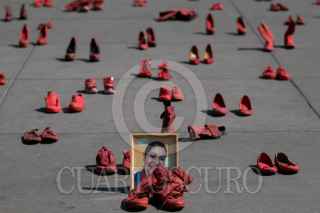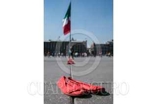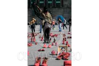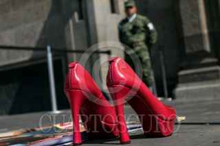 Colectivas Feministas y mujeres de la sociedad civil realizaron el perfomance “Zapatos Rojos. 30 años de Feminicidios”, de la artista mexicana Alina Chauvet, en la plancha del Zócalo. La instalación tiene como objetivo el exhibir y dar presencia a las víctimas de feminicidio en el país. En 2019, México ocupó el primer lugar en feminicidios de América Latina, con un promedio de 10 de estos crímenes al día. FOTO; GALO CAÑAS /CUARTOSCURO.COM