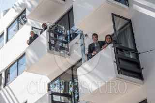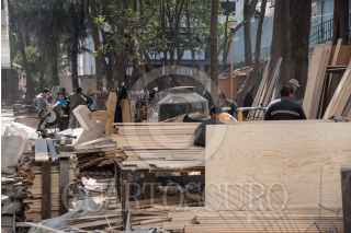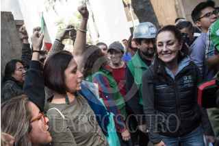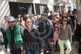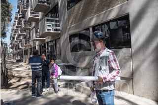 Claudia Sheinbaum, jefa de Gobierno, César Cravioto Romero, titular de la Comisión para la Reconstrucción, y vecinos realizaron un recorrido y supervisaron los avances de las obras de reconstrucción del Multifamiliar Tlalpan tras el sismo del 19 de septiembre del 2017. FOTO: MARIO JASSO /CUARTOSCURO.COM