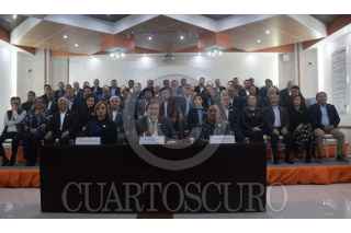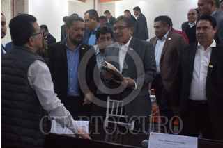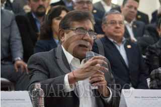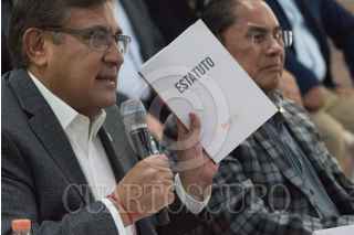 Alfonso Cepeda Salas, secretario General de la SNTE y Gregorio Jorge Rodríguez, presidente del Comité Nacional Electoral, durante la presentación del Reglamento para la Elección de Directivas Seccionales, en el Sindicato Nacional de Trabajadores de la Educación, ubicada en calle Venezuela, Centro Histórico. FOTO: MAGDALENA MONTIEL/CUARTOSCURO.COM