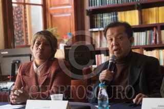 Claudia Reyes Coronilla, Jefa de Sección de Enseñanza Artística-INBAL; Luo Jun, director del Centro Cultural de China en México, y Jorge Luis Berdeja, subdirector de difusión y relaciones públicas del MNCM, , ofrecieron detalles de la exposición "China en mi imaginación", que se realizará en el Museo Nacional de las Cultura del Mundo. FOTO: MOISÉS PABLO/CUARTOSCURO.COM