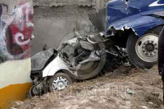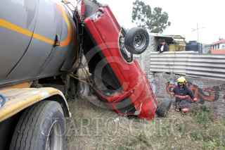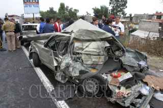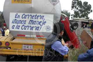 MÉXICO D.F.-11NOVIEMBRE2005.- Una pipa cargada de azufre chocó contra 8 autos y una casa en el kilómetro 17.5 de la carretera México-Puebla. Murieron tres personas. Bomberos y elementos de rescate atendieron el accidente. FOTO: Pedro Marrufo/CUARTOSCURO.COM