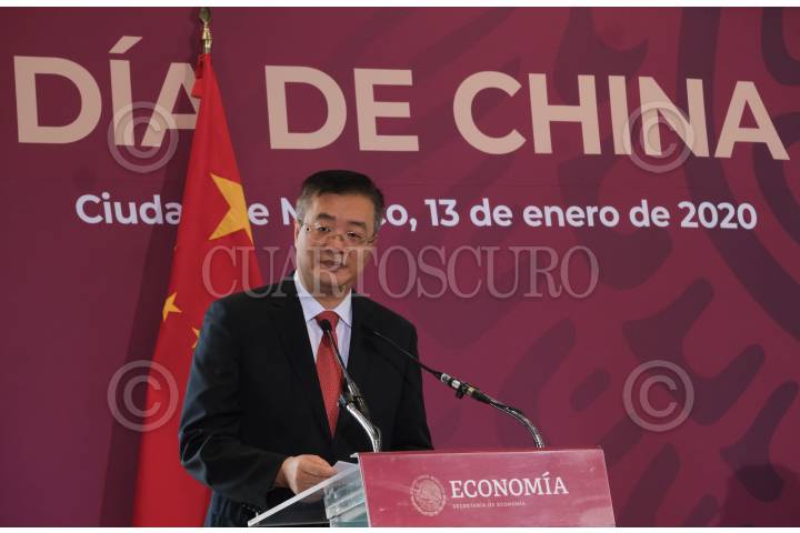 CIUDAD DE MÉXICO, 13ENERO2020.- Zhu Qingquiao, embajador de China en México; Graciela Márquez, secretaria de Economía, y Marcelo Ebrard, secretario de Relaciones Exteriores, encabezaron la Ceremonia inaugural del "Día de China". El acto se realizó en las instalaciones de la Secretaria de Economía. FOTO: GRACIELA LÓPEZ /CUARTOSCURO.COM