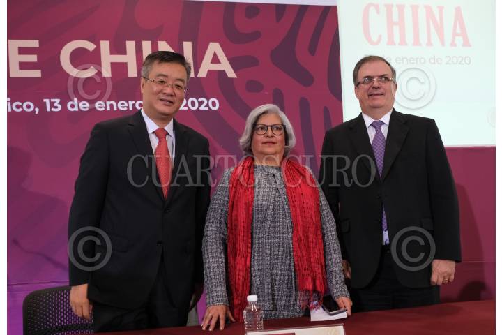 CIUDAD DE MÉXICO, 13ENERO2020.- Zhu Qingquiao, embajador de China en México; Graciela Márquez, secretaria de Economía, y Marcelo Ebrard, secretario de Relaciones Exteriores, encabezaron la Ceremonia inaugural del "Día de China". El acto se realizó en las instalaciones de la Secretaria de Economía. FOTO: GRACIELA LÓPEZ /CUARTOSCURO.COM