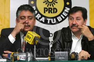 MÉXICO, D.F. 11NOVIEMBRE2005.- El secretario general del CEN del PRD, Guadalupe Acosta Naranjo y el vocero de ese partido Gerardo Fernández Noroña ofrecieron una conferencia de prensa para hablar sobre los nuevos videos de perredistas recibiendo dinero de Carlos Ahumada. FOTO: Miguel Dimayuga/CUARTOSCURO.COM