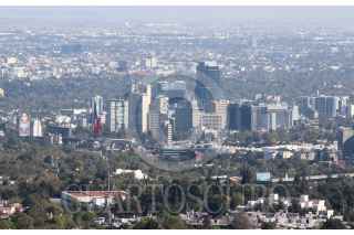 Aspectos de la ciudad con cielo despejado y con un reporte de aire de regular a bueno.