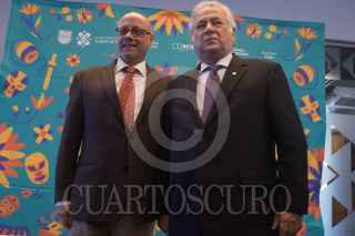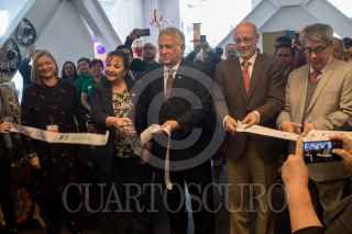 Carlos Mackinlay, secretario de Turismo de la capital, y Miguel Torruco Marqués, secretario de Turismo Federal, inauguraron la exposición "Arte y Colores de la Ciudad de México", en Punto México, que se ubica a un costado de la sede de la Secretaría de Turismo. FOTO: MOISÉS PABLO/CUARTOSCURO.COM