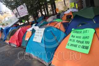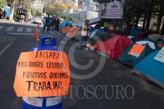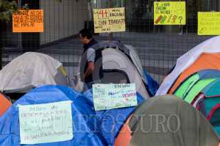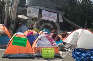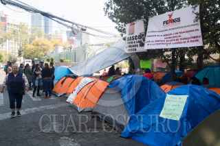 Trabajadores que perdieron su empleo tras la desaparición del Seguro Popular y la creación del Instituto Nacional de Salud y Binestar (Insabi) mantienen un plantón en lo que fuera la sede del Seguro Popular, ubicada en la colonia Guadalupe Inn. Los inconformes, la mayoría provenientes de Oaxaca, Tabasco y Michoacán, han señalado que no han sido atendidos en sus demandas y de continuar así llevarán su protesta a Palacio Nacional. FOTO: MOISÉS PABLO/CUARTOSCURO.COM