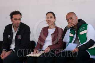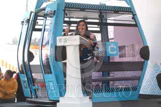 CIUDAD DE MÉXICO, 14ENERO2020.- Andrés Lajous, secretario de Movilidad de la capital; Clara Brugada, alcaldesa de Iztapalapa; Claudia Sheinbaum, jefa de Gobierno y Jesús Antonio Esteva Medina, secretario de Obras y Servicios, encabezaron la presentación del arranque de obra del Cablebús Línea 2, la cual contará con 308 cabinas. El acto se realizó en el CETRAM de Constitución de 1917. FOTO: GRACIELA LÓPEZ /CUARTOSCURO.COM