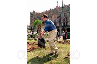 Esta tarde el delegado en Miguel Hidalgo Arne Aus Den Ruthen Haag, acudió al zocalo capitalino a instalar un pequeño jardin frente al edificio de gobierno capitalino en señal de protesta ya que exige que se le regrese a la delegación el derecho de administrar el Bosque de Chapultepec. FOTO: Pedro Mera/CUARTOSCURO.COM