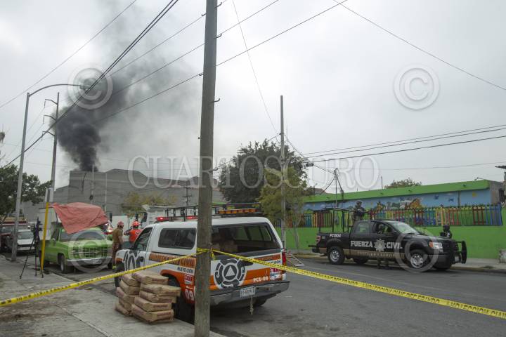 Un incendio en una fábrica de químicos al poniente de la ciudad de Monterrey provocó la evacuación de al menos 500 personas entre vecinos y alumnos y escuelas de educación básica. Bomberos intentan sofocar el incendio. Elementos de seguridad y prevención de diversas corporaciones acudieron al lugar.