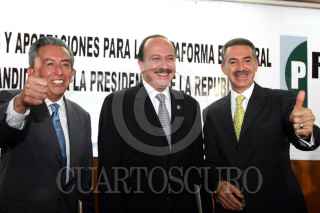 MEXICO, D.F. 12NOVIEMBRE2005.- Los precandidatos del PRI Everado Moreno y Roberto Madrazo durante el Foro tematico y aportaciones para la plataforma de los precandidatos a la presidencia de la Republica. FOTO Juan Flores/CUARTOSCURO.COM
