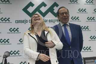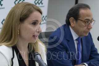 Claudia Jañez, presidenta del Consejo Ejecutivo de Empresas Globales, y Carlos Salazar Lomelí, presidente del Consejo Coordinador Empresarial, ofrecieron una rueda de prensa en la que coincidieron que el gobierno actual tiene que mandar señales claras a la iniciativa privada para incentivar la inversión nacional y extranjera. Esto luego de que el Jefe del Ejecutivo en diciembre ordenó al director de la CFE revisar los contratos de subsidio entre la empresa gubernamental y las empresas privadas. FOTO: MOISÉS PABLO /CUARTOSCURO.COM