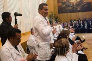 El Consejo Técnico del Instituto Mexicano del Seguro Social sesionó de manera extraordinaria para tomarle protesta a los 35 nuevos titulares de los Órganos de Operación Administrativa -antes delegaciones-, los cuales fueron seleccionados de la convocatoria lanzada el 18 de noviembre del año pasado. El director del instituto, Zoe Robledo, destacó que no conoce a ninguno, que todos fueron elegidos por sus conocimientos en el examen. Los nombres de los elegidos fueron sorteados para designar el estado en donde desempeñaran su nuevo puesto, con lo que se busca eliminar cualquier sospecha de "amiguismo o dedazo", resalto el director. FOTO: MOISÉS PABLO/CUARTOSCURO.COM