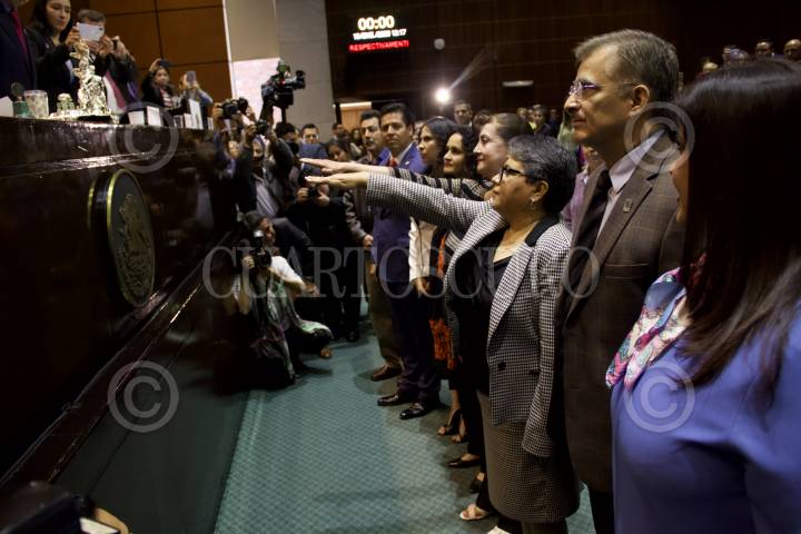 Tomaron protesta Raquel Buenrostro como titular del SAT y Thalía Lagunes como titular de la Fiscalía Mayor de la Secretaría de Hacienda, en el pleno de la sesión permanente. FOTO: ANDREA MURCIA/CUARTOSCURO.COM