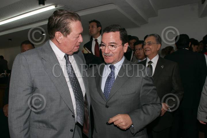 MÉXICO, D.F. 12NOVIEMBRE2005.- Los precandidatos del PRI a la presidencia de la república Everardo Moreno y Roberto Madrazo durante el Foro temático del PRI en la CTM. FOTO: ESPECIAL/CUARTOSCURO.COM