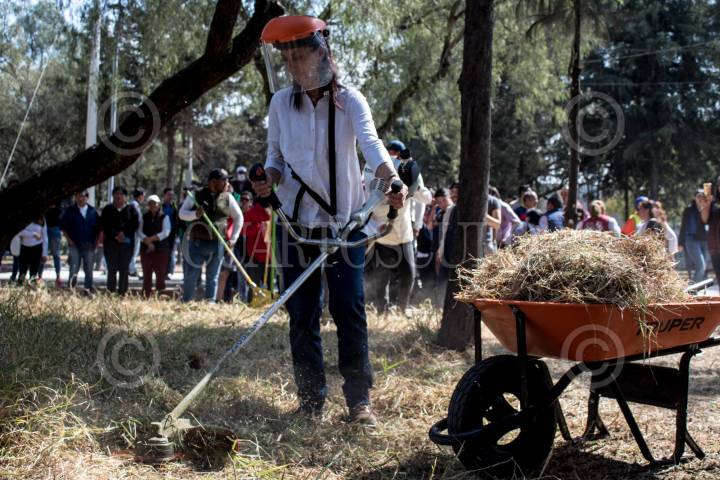 Claudia Sheinbaum Pardo, jefa de Gobierno y Francisco Chíguil Figueroa, alcalde Gustavo A. Madero encabezaron el "Sábado de Tequio", en el que podaron pasto, pintaron bancas y bardas en Brecha Cerro del Chiquihuite, colonia Tlalpexco, alcaldía Gustavo A. Madero. FOTO: MAGDALENA MONTIEL/CUARTOSCURO.COM