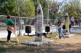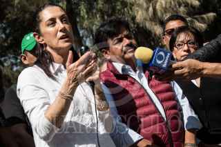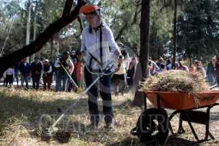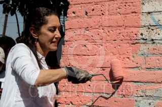 Claudia Sheinbaum Pardo, jefa de Gobierno y Francisco Chíguil Figueroa, alcalde Gustavo A. Madero encabezaron el "Sábado de Tequio", en el que podaron pasto, pintaron bancas y bardas en Brecha Cerro del Chiquihuite, colonia Tlalpexco, alcaldía Gustavo A. Madero. FOTO: MAGDALENA MONTIEL/CUARTOSCURO.COM