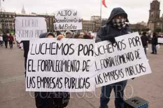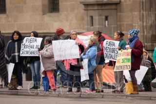 CIUDAD DE MÉXICO, 20ENERO2020.- Adultos mayores acompañados de jóvenes y algunos niños, realizan una protesta en el Zócalo capitalino, exigen se eliminé el prepago de las tarifas de luz así como él cambio de los medidores digitales. FOTO: VICTORIA VALTIERRA/CUARTOSCURO.COM