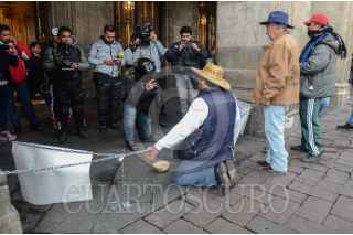 CIUDAD DE MÉXICO, 20ENERO2020.- Campesino productor de pulque originario de la alcaldía de Xochimilco se encadeno a los muros del edifico de gobierno para manifestar su inconformidad en contra de funcionarios de dicha alcaldía por una supuesta extorsión. FOTO: ARMANDO MONROY /CUARTOSCURO.COM
