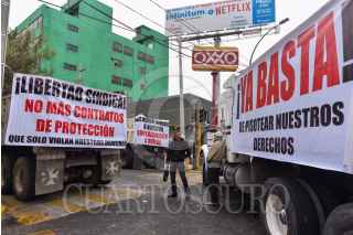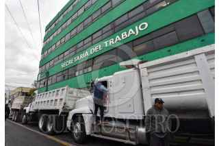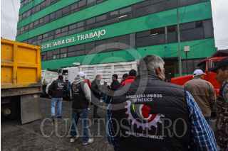 Integrantes del Sindicatos Unidos de Mexico se manifestaron en las instalaciones de la Secretaría del Trabajo Estatal denunciando que fueron amenazados por parte de otro sindicato cuando se encontraban trabajando en una obra en San Mateo Atenco. FOTO: CRISANTA ESPINOSA AGUILAR /CUARTOSCURO.COM