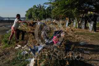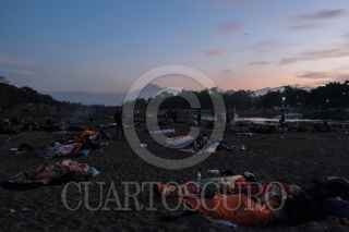 CIUDAD HIDALGO, CHIAPAS, 21ENERO2020.- Migrantes centroamericanos principalmente hondureños durmieron a la orilla del Río Suchiate mientras esperan continuar su viaje rumbo a Estados unidos cruzando el territorio mexicano. FOTO: ISABEL MATEOS /CUARTOSCURO.COM