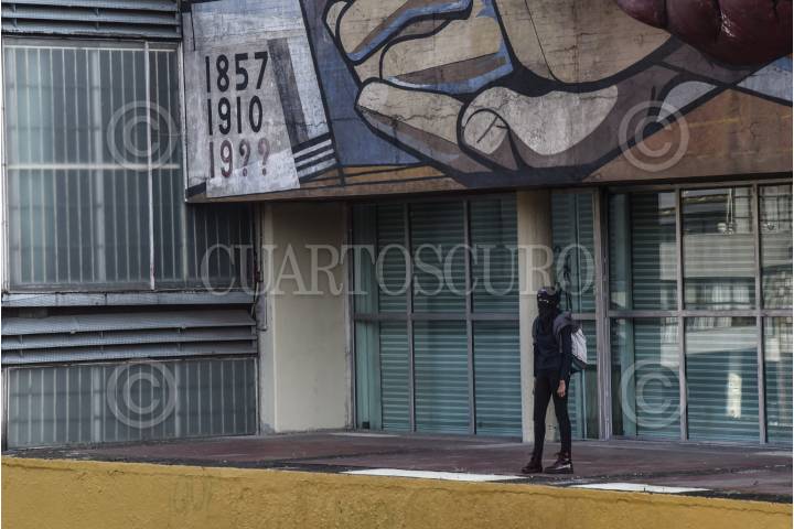 Integrantes de la Federación Local de Estudiantes del Colegio de Ciencias y Humanidades Azcapotzalco; Integrantes de la Asamblea Estudiantil de la Escuela Nacional Preparatoria Plantel 7, y otras organizaciones estudiantiles, se manifestaron desde el Parque de “La Bombilla” hasta las instalaciones de Rectoría en Ciudad Universitaria, para exigir justicia por la muerte de Jesús Gómez estudiante del CCH Azcapotzalco, y solicitaron a las autoridades mediante un pliego petitorio una serie de demandas que permitan esclarecer los hechos y garantizar la seguridad en los planteles de la UNAM. FOTO: MARIO JASSO /CUARTOSCURO.COM