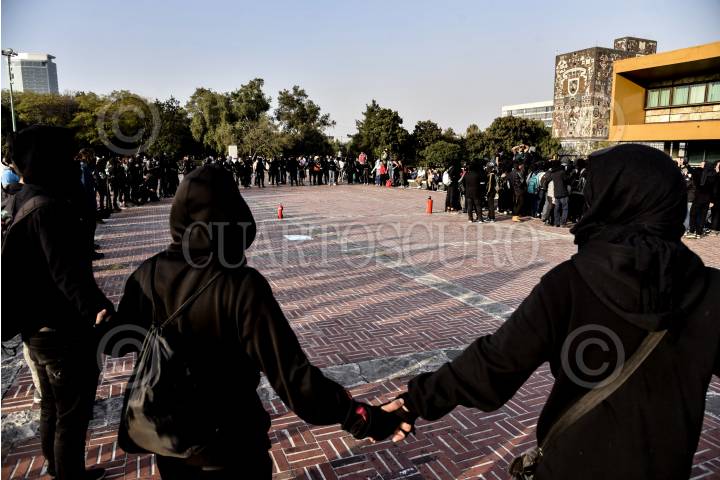 Integrantes de la Federación Local de Estudiantes del Colegio de Ciencias y Humanidades Azcapotzalco; Integrantes de la Asamblea Estudiantil de la Escuela Nacional Preparatoria Plantel 7, y otras organizaciones estudiantiles, se manifestaron desde el Parque de “La Bombilla” hasta las instalaciones de Rectoría en Ciudad Universitaria, para exigir justicia por la muerte de Jesús Gómez estudiante del CCH Azcapotzalco, y solicitaron a las autoridades mediante un pliego petitorio una serie de demandas que permitan esclarecer los hechos y garantizar la seguridad en los planteles de la UNAM. FOTO: MARIO JASSO /CUARTOSCURO.COM