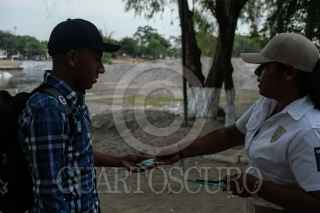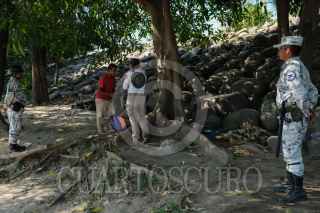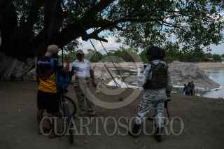 CIUDAD HIDALGO, CHIAPAS, 21ENERO2020.- Agentes del Instituto Nacioanl de Migración en conjunto con elementos de la Guardia Nacional continúan con el operativo de revisión de documentos a toda persona que ingresa al país por el Río Suchiate. La Guardia Nacional a incrementado el numero de elementos en el operativo desde la posible entrada de la Caravana a territorio mexicano. FOTO: ISABEL MATEOS /CUARTOSCURO.COM