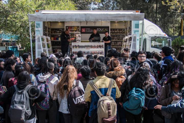 CIUDAD DE MÉXICO, 22ENERO2020.- Paco Ignacio Taibo II, director del Fondo de Cultura Económica (FCE)y Benjamin Barajas, director del Colegio de Ciencias y Humanidades Oriente (CCH), encabezaron la firma de convenio entre el FCE y CCH Oriente. Consiste en el asilo del camión itinerante de libros a precios con hasta el 90% de descuento, con el fin de incentivar a los jóvenes a leer. FOTO: ANDREA MURCIA /CUARTOSCURO.COM