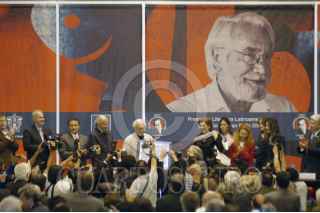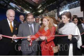GUADALAJARA, JALISCO 27NOVIEMBRE2005.- La Primera Dama del Perú, Ileane Karp de Toledo, Acompañada por la Secretaria de Cultura de Mexico, Sari Bermudez y el Embajador de Peru en México, en el corte del listón inaugural en el pabellón del Perú en la 19 edición de la Feria Internacional del Libro de Guadalajara. FOTO: Sergio Garibay/CUARTOSCURO.COM