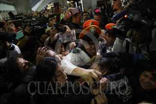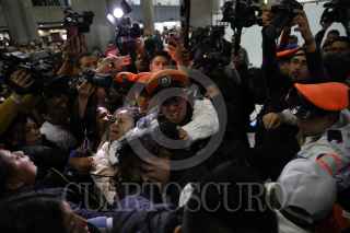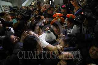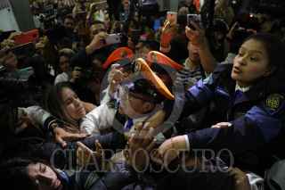 CIUDAD DE MÉXICO, 22ENERO2020.- Padres y madres de familia que protestaban en la Terminal 1 del Aeropuerto Internacional de la Ciudad de México por que acusan que no hay las medicinas paras sus hijos enfermos de cáncer en el Hospital Infantil de México "Federico Gómez" se enfrascaron en una bronca contra los policías que resguardan la terminal aérea. La gresca inició cuando los inconformes intentaron ingresar a las instalaciones tras bloquear varias horas la avenida principal de la T1. FOTO: CUARTOSCURO.COM