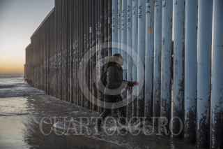 TIJUANA, BAJA CALIFORNIA, 22ENERO2020.- Una pareja de migrantes centroamericanos cruzaron de manera ilegal la frontera entre México y Estados Unidos, el suceso se dio a la altura de playas de Tijuana donde la pareja decidió escalar el muro divisorio con la ayuda de una cuerda, una vez en territorio estadounidense ambos fueron detenidos por oficiales de la patrulla fronteriza. FOTO: OMAR MARTÍNEZ/ CUARTOSCURO.COM