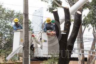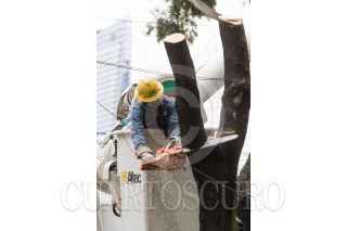CIUDAD DE MÉXICO, 23ENERO2020.- Trabajadores de CFE cortan el tronco de un árbol en la colonia Condesa. FOTO: MOISÉS PABLO/CUARTOSCURO.COM